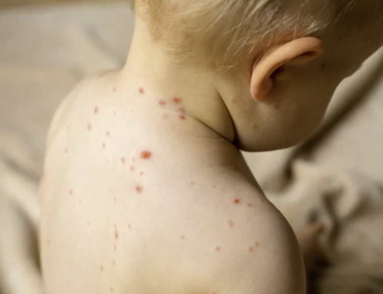 „Die Masern beginnen mit unspezifischen Krankheitszeichen, wie Fieber, Husten und Schnupfen, einer Entzündung der Augenbindehaut sowie weißlichen, kalkspritzerartigen Flecken an der Mundschleimhaut. Wenige Tage später bildet sich der typische Hautausschlag mit bräunlich-rosafarbenen Flecken. Der Ausschlag tritt zunächst im Gesicht und hinter den Ohren auf, breitet sich dann über den ganzen Körper aus und bleibt in der Regel 4 bis 7 Tage bestehen. Beim Abklingen kann es zu einer Schuppung der Haut kommen.“ Quelle: https://www.infektionsschutz.de/infektionen/erregersteckbriefe/masern/
