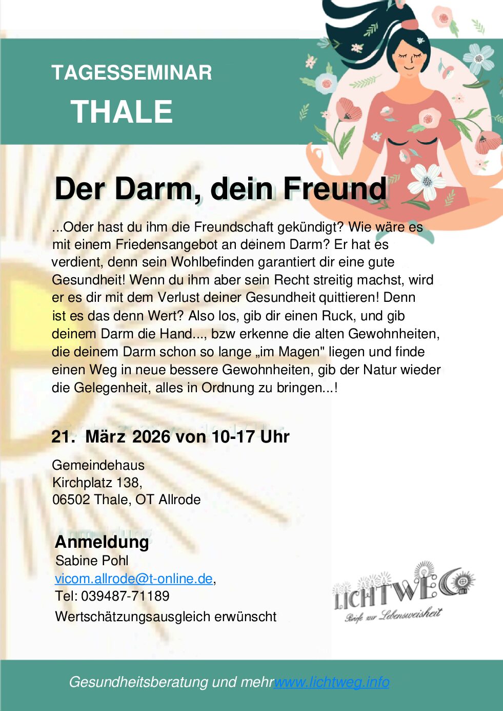 Anmeldung bitte direkt im Seminarhotel, Biohotel Lindenhof, 09623 Rechenberg-Bienenmühle, OT Holzhau, Tel: 037327-820, eMail: info@lindenhof-holzhau.de